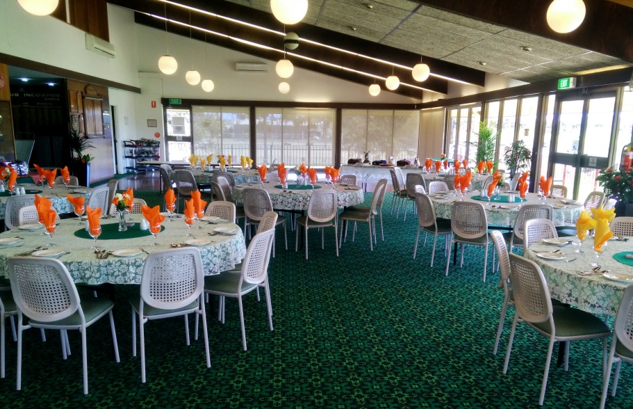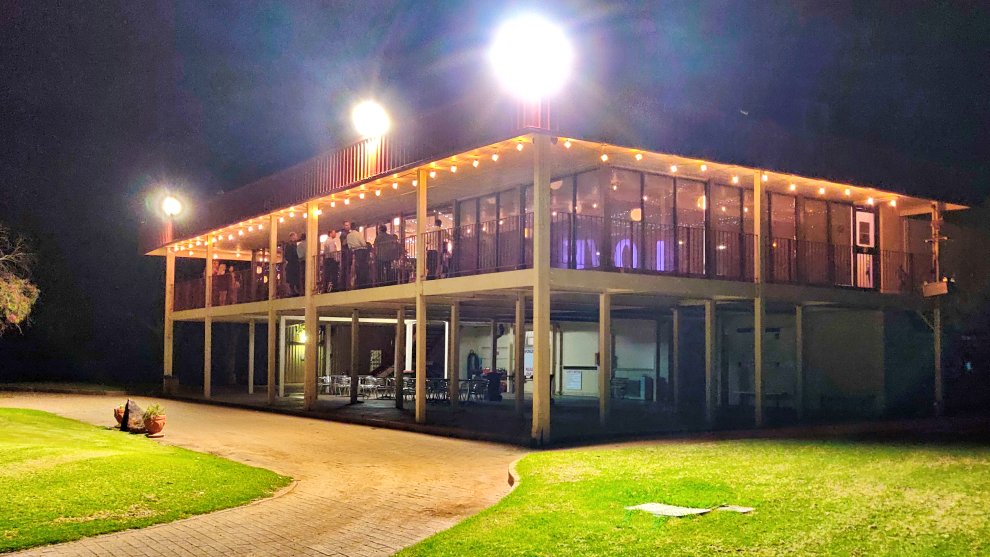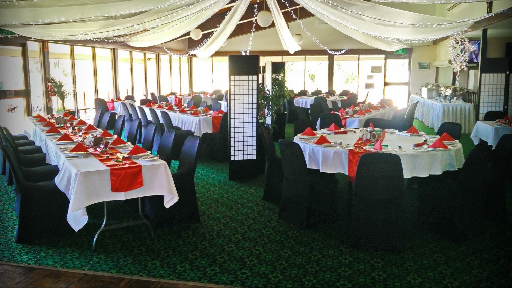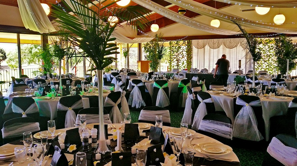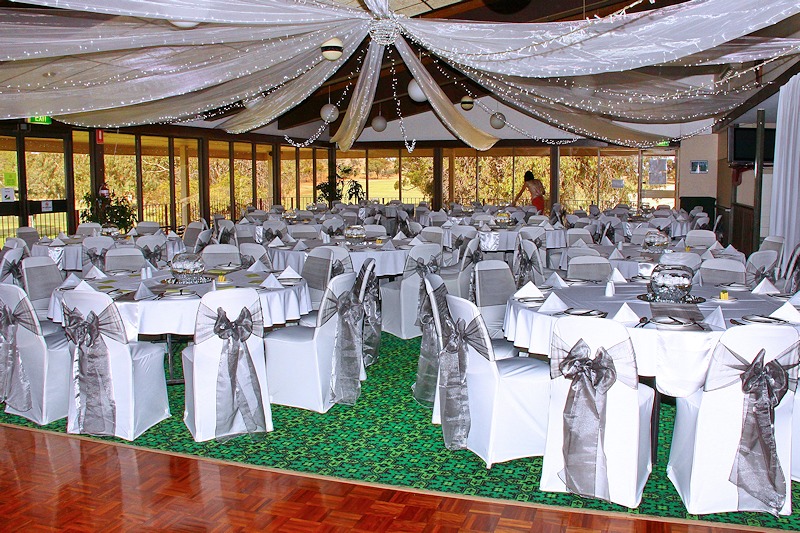 Photo Album « back to albumFunction Facilities One of many wedding set-ups with ceiling Lighting & CanopyAmple car parking for allThe course offers a popular backdrop for Photo shoots.The view from the balconyOur fully stocked Club BarThe Function Room without function set-upSpecialty function set-upAnother Formal set-upAnother less formal function set-upThe grounds at the side of the Club are often used for weddingsCan you count the emus?Excellent meeting/seminar venue with all facilities